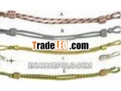 Premium Export Quality Whistle & Chin Straps TCT -403 Made frompure Cotton and WoolWeOffer - Whistle & Chin Straps TCT -403 about Us We are Pleaseto introduce our selves that we are real Manufacturers andExporters of highi Quality Hand Embroidery Bullion Badges, Peaks.Gold Wire Braid, Pilot Epaulette, Sword Knots, Bullion WireFringes, Lanyards, Aiguillette, Shoulder Cords, Ties, Sashes, WoolBerets, Banners, White PVC Belet, Leather Sam Brown Belt We alsodeal into: # Shoulder Cords # Ties # Wool Berets # White PVCBeltWhistle And Chin Straps TCT -403